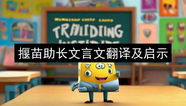 3. 教育孩子要有正确的方法:揠苗助长的故事也反映了古代教育孩子的一些错误观念和方法。在现代社会,我们应该摒弃这种错误的教育方式,采用更加科学、合理的教育方法,帮助孩子健康成长。