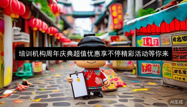 为了庆祝 [培训机构名称] 周年庆典,感谢广大学员和家长的支持,我们特别推出了“超值优惠享不停,精彩活动等你来”系列活动,具体内容如下: